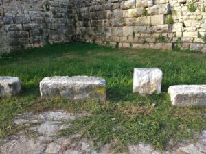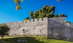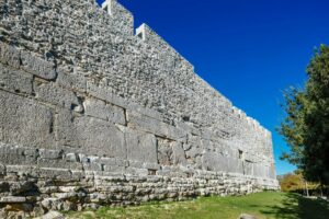 Built on the site of modern Arta, Ambracia was extended to the river Arachthos, which surrounded the city on three sides. The naturally fortified position of the city was reinforced by a strong and imposing fortification, 4,5 km long, which was constructed from domestic limestone, enclosing an area of more than 100 hectares. Parts of the fortification date back to the end of the 5th century BC, but also in the middle of the 4th century BC, while in some parts of the city a more negligent precinct of archaic times has been discovered. Due to its chronological evolution, the fortification masonry presents various typological characteristics. The wall presents angles at some points, and it was reinforced by strong semicircular or rectangular towers. The foundations of three unknown ancient towers were found incorporated in three byzantine towers of the Castle’s NW sector. It is unknown how many gates the fortification had; however, one has been located on today’s city street and another one is verified that it was located at the extension of a street on the southwest side of the city. The walls had played a determining role in the inhabitants’ lives of the ancient city, since they protected them not only from invaders, but from the rushing waters and floods of the Arachthos river as well. The solid and imposing fortification of Ambracia reflects to this day the organization and prestige of the ancient city.
